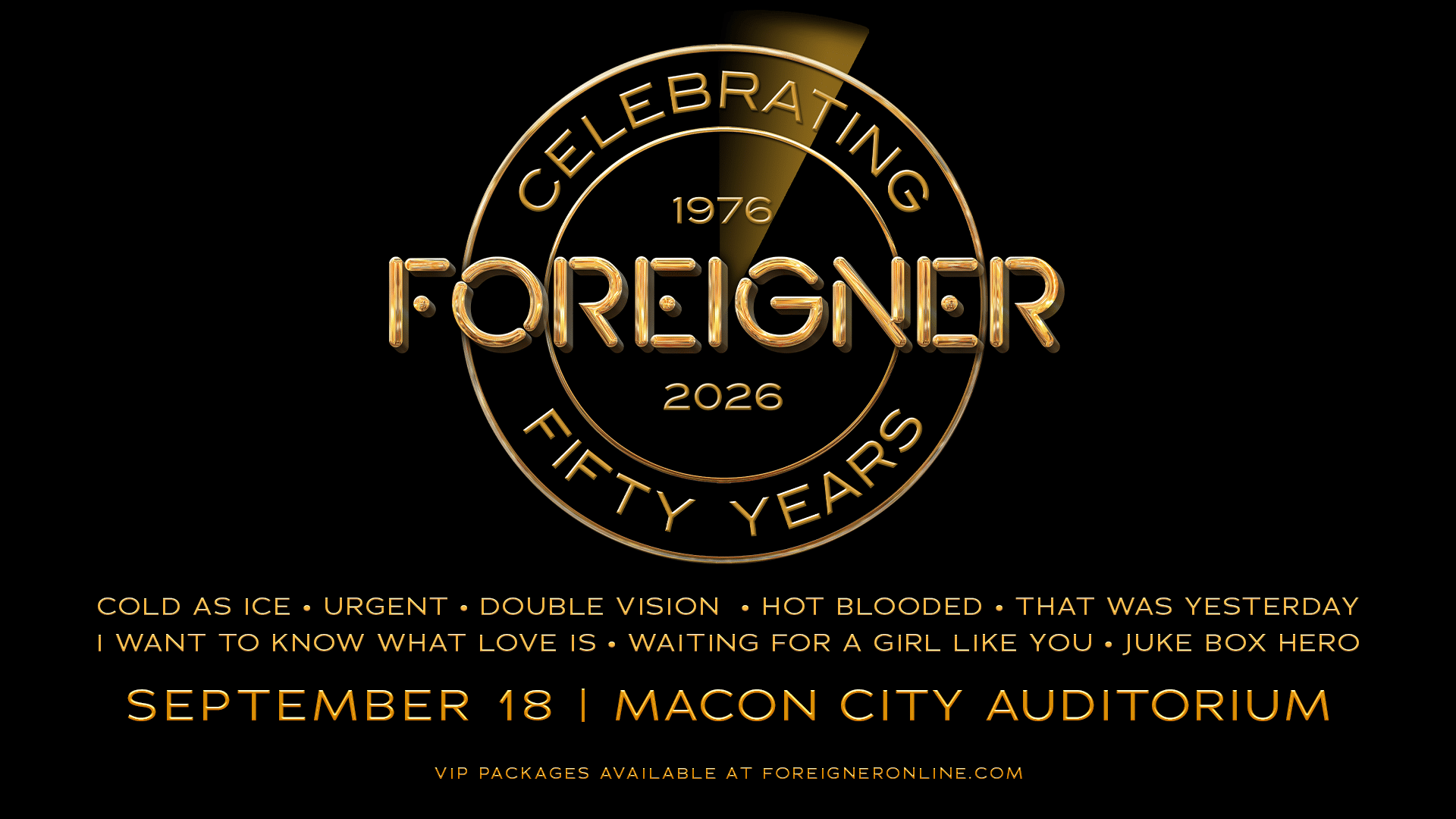 Rock legends Foreigner are headed to the Macon City Auditorium on September 18! Tickets go on sale Friday 2/27 at 11AM!