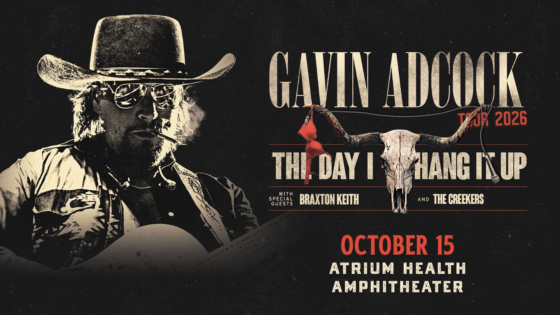 Country Music maverick Gavin Adcock announces his new headline tour, The Day I Hang It Up Tour 2026, is hitting the Atrium Health Amphitheater…