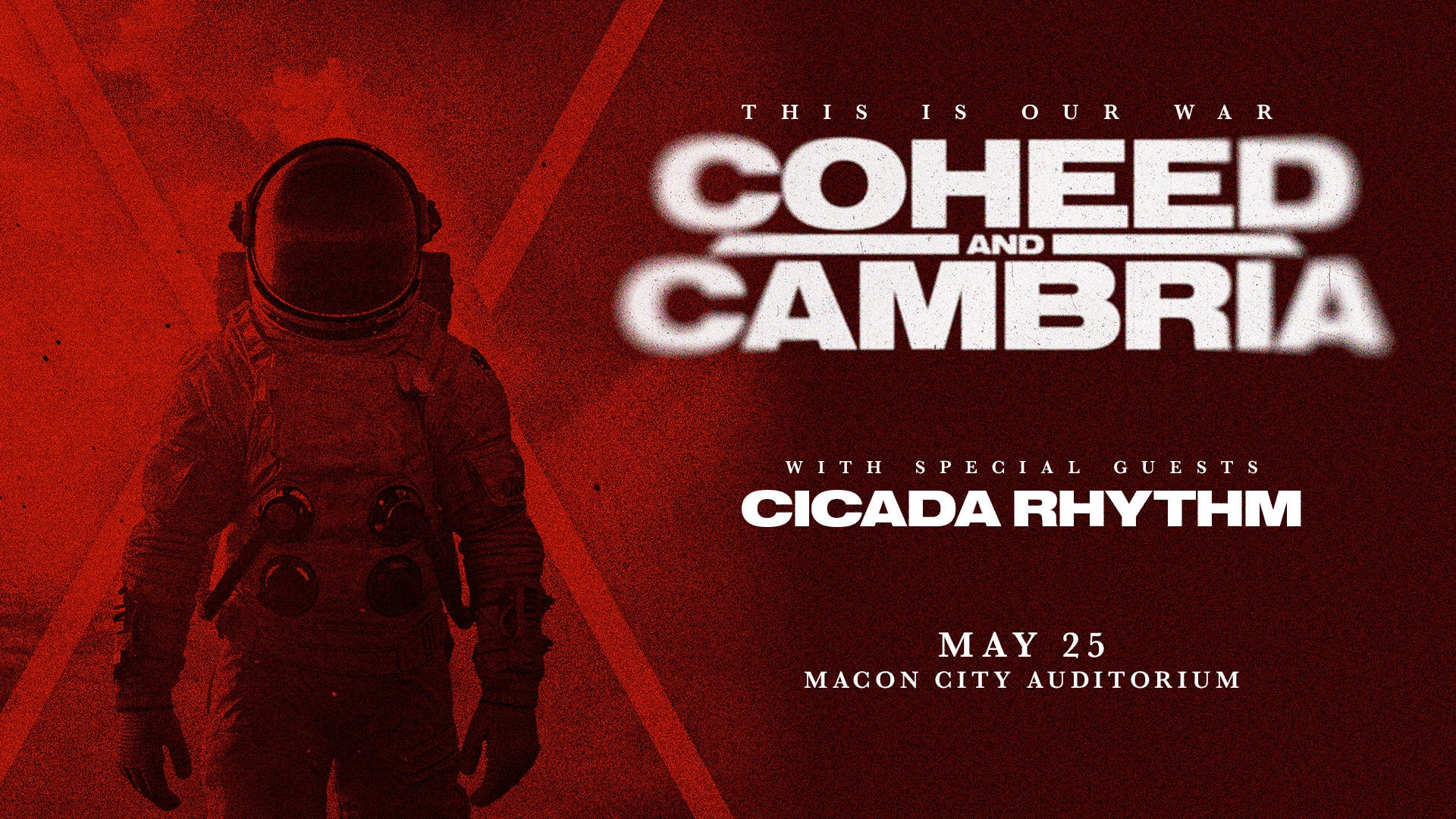 COHEED AND CAMBRIA are coming to Macon City Auditorium on May 25 with special guests Cicada Rhythm. Tickets onsale Friday, March 27 at 10AM. Tickets…
